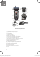 RUS СПОСОБ ПРИМЕНЕНИЯ УСТРОЙСТВА Благодаря подвижной головке электробритвы, бритье становится простым и эффектным, а производительный двигатель и аккумулятор с длительным временем действия гарантируют максимум удовольствия от пользования устройством. 1. Снимите накладку, предохраняющую бритвенную решетку (1). 2. Включите устройство при посредстве включателя (9). 3.