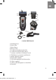 DESCRIPTION OF THE DEVICE 1. Protective lid 2. Shaving foil 3. Shaver head 4. Shaving blade block 5. Buttons releasing the shaving foil 6. Buttons releasing the head 7. Protruding trimmer for longer hair 8. Button to protrude the trimmer. 9. On/Off 10. Charging control light 11. Shaver power supply socket 12. Power pack 13. Power pack cord with a plug 14. Case 14 M-01_golarka_nowe zdjecia.