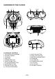 OVERVIEW OF THE PLAYER 1 4 5 2 14 3 15 16 14 6 7 9 11 12 8 10 17 13 18 19 LOCATION OF CONTROLS 1. FM TELESCOPIC ANTENNA 2. FOLDING HANDLE 3. CD DOOR 4. USB PORT 5. STANDBY BUTTON 6. FUNCTION BUTTON 7. STOP/M-/ALBUM BUTTON 8. MODE/MEM BUTTON 9. PLAY/M+/10+ BUTTON 10. CD DOOR OPEN AREA 11. SKIP-/TUN- BUTTON 12. SKIP+/TUN+ BUTTON 13. BATTERY COMPARTMENT 14. SPEAKERS 15. LCD DISPLAY 16. STANDBY INDICATOR 17. DC IN JACK 18. AUX IN JACK 19.