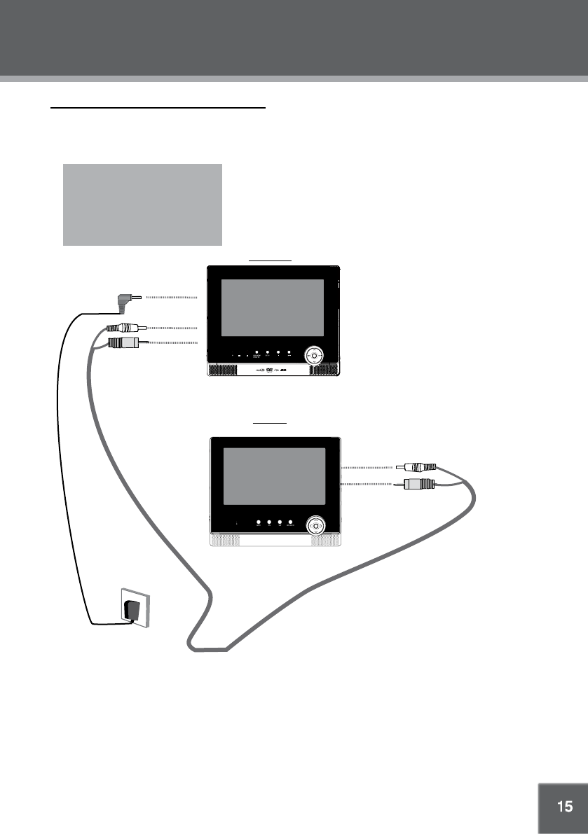 Outputting audio and video signal from the main unit to the monitor by the DC car cord.•