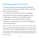 Setting up hands-free kit 1. Fix the receiver on the best position of the car. 2. Connect the receiver to the AUX-in jack of the car stereo system. 3. Connect the receiver to the car charger. 4. Plug the car charger into the cigarette socket. 5. Pair the receiver to your smart device. 6. Adjust the car radio to AUX in mode. 7. Now you can enjoy your music through the car stereo system. Note:In most cases, the sound quality is excellent.