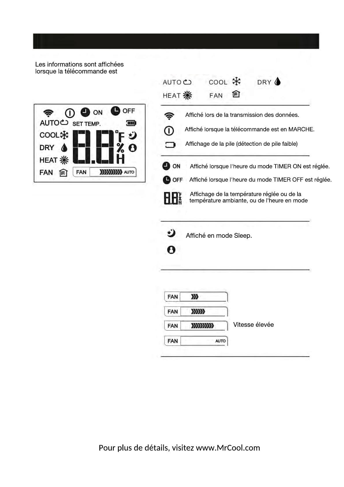 Indication de la vitesse du climatiseur