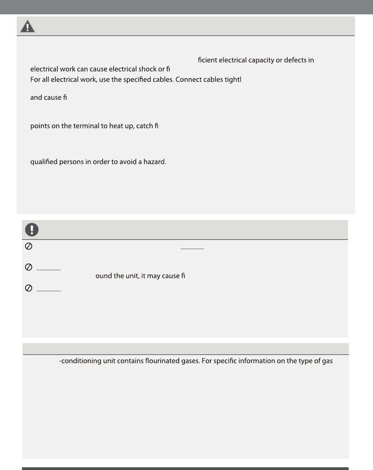6. For all electrical work, follow all appropriate wiring standards, regulations, and the Installation