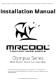 Please read this manual carefully before installation and keep it for future reference. Installation Manual Olympus Series Mid-Static Duct Air Handler Please keep this manual where the operator can easily find it. Inside you will find helpful hints on how to use and maintain your unit properly. For more details visit www.mrcool.