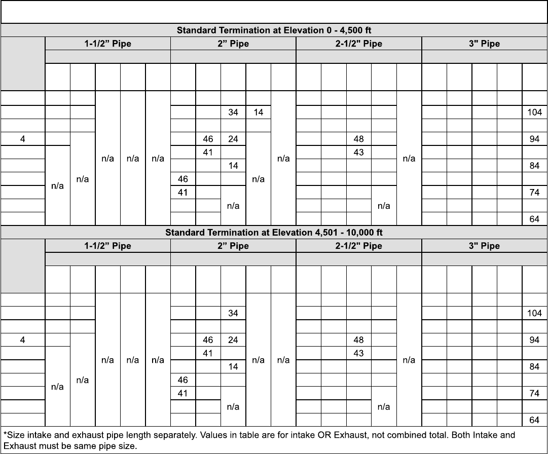 MG*M95SE*XA Maximum Allowable Intake or Exhaust Vent Length in Feet