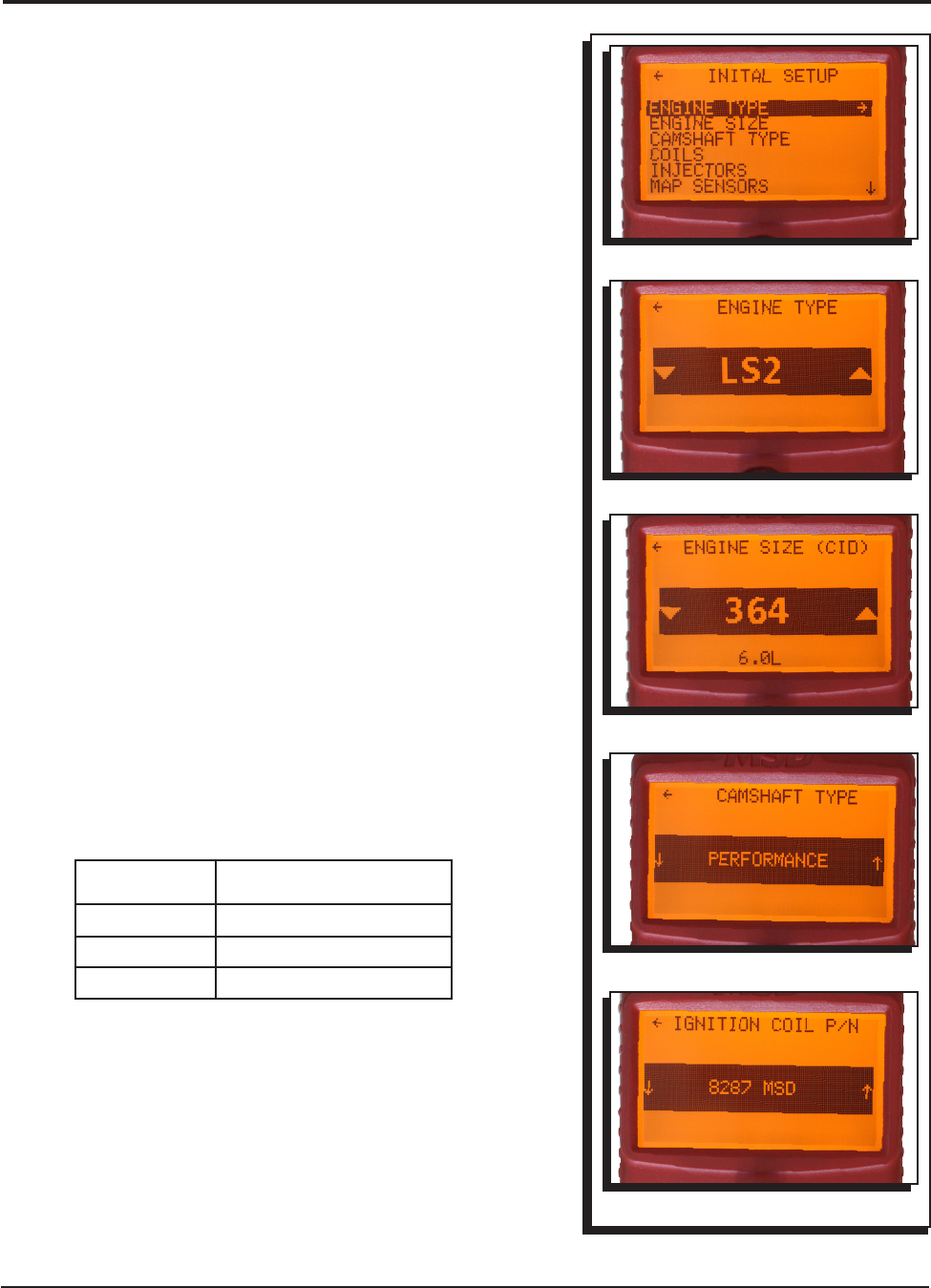 inches will automatically be set. If your engine has been