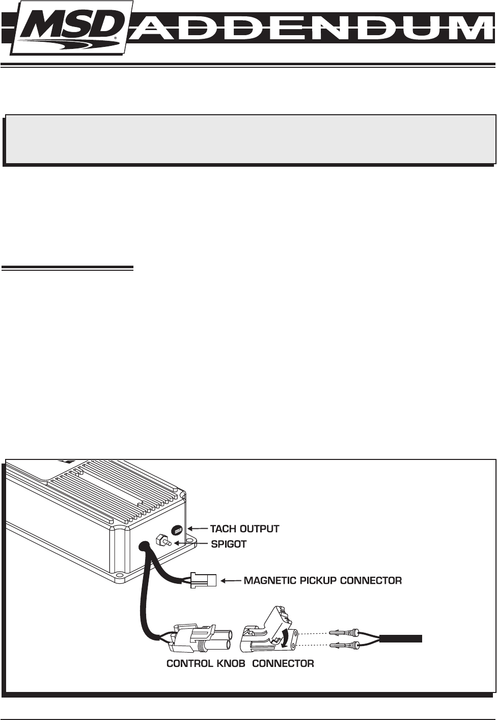 This is an addendum to the supplied instructions that detail the function and wiring of the MSD 6BTM