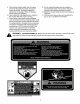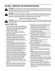 9. Afterstrikingaforeignobject,stoptheengine, 12.Donotchangetheenginegovernorsettingsor disconnect thesparkplugwire(s)andground over-speed theengine.Thegovernorcontrolsthe againsttheengine.Thoroughly inspectthe maximum safeoperating speedoftheengine. machineforanydamage.Repairthedamage 13.Maintainorreplacesafetyandinstruction labels,as beforestartingandoperating. necessary. 10. Neverattempttomakeadjustments or repairsto 14.Observe proper disposal laws and regulations for themachine whiletheengineis running.