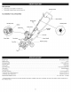 APPLiCATiON • Cultivating sodandlight to medium = soil in garden areas, around trees, etc. Cultivating Throttle Control NO ASSEMBLY TOOLS REQUIRED Upper Handle Starter Rope Grip \ Air Filter Cover Muffler On/Off Control Choke Lever Spark Plug Handlebar Knobs \ Fuel Cap Primer Bulb Tine Guard Lower Handle Gear Box Assembly Tines Engine Type ....................................................................................... Displacement ..................................................