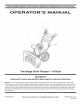 This Operator's Manual is an important part of your new snow thrower, it will help you assemble, prepare and maintain the unit for best performance. Please read and understand what it says. Table of Contents Safety Labels ...................................................... Safe Operation Practices ................................... Setting Up Your Snow Thrower .......................... Operating Your Snow Thrower ........................... MakingAdjustments .........................................