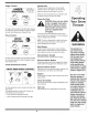 Setting Up Your Snow Thrower 1. Observethe lowerrear area of the snowthrowerto be sure bothcablesare alignedwith rollerguides beforepivotingthe handleupward. NOTE:Referenceto right i and left side of the machine are observedfrom the operatingposition. 2. Securethe handleby tighteningthe plasticwing knoblocatedon boththe left and rightsidesof the handle.Removeand discardany rubberbands,if present.Theyare for packagingpurposesonly. 3. Positionthe chute assemblyoverthe base.