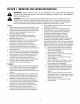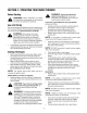 Operation 18. Neverputyourhandinthedischarge orcollector openings. Alwaysusetheclean-out toolprovided to 1. Donotputhandsorfeetnearrotatingparts,inthe unclogthedischarge opening.Donotunclogchute auger/impeller housing or chuteassembly. Contact assemblywhileengineisrunning.Shutoffengine withtherotatingpartscanamputate handsand feet. andremainbehindhandlesuntilallmovingparts havestoppedbeforeunclogging. 2. Theauger/impeller controlisasafetydevice.Never andaccessories approved bypassitsoperation.