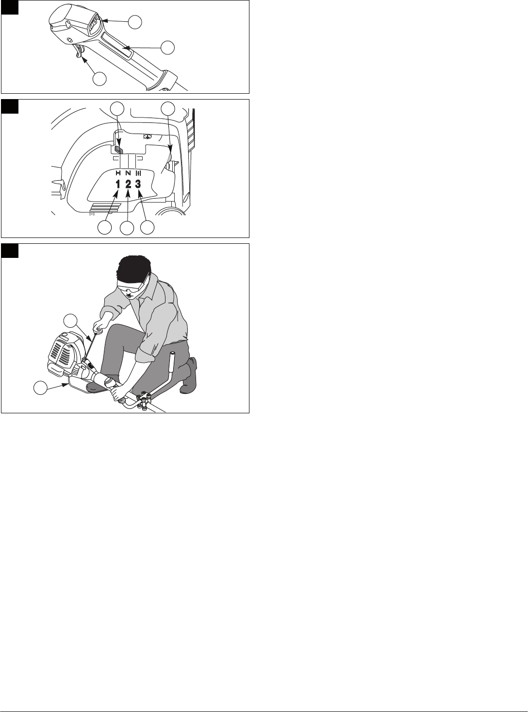 2. Cran d'arrêt de la manette 7. Manette de starter