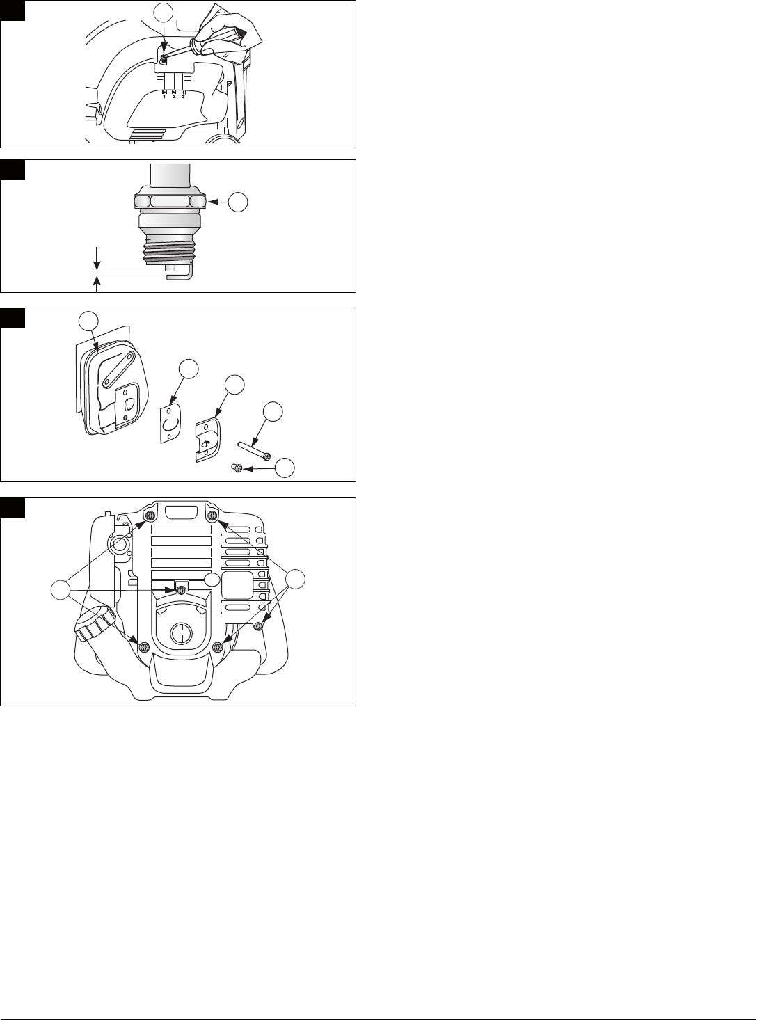 1. Leelaufeinstellschraube 5. Funkengitterabdeckung