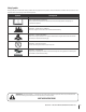 Safety Symbols This page depicts and describes safety symbols that may appear on this product. Read, understand, and follow all instructions on the machine before attempting to assemble and operate. Symbol Description READ THE OPERATOR’S MANUAL(S) Read, understand, and follow all instructions in the manual(s) before attempting to assemble and operate WARNING—GASOLINE IS FLAMMABLE Allow the engine to cool at least two minutes before refueling.