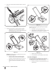 2. Remove the T-bolts from the handle brackets as shown in Fig. 3-3. C C 4. Figure 3-3 3. Follow the steps below to complete handle assembly: a. Pull upward on the handle until holes in lower handle (shown in Fig. 3-3 deck cutaway) line up with holes in handle bracket. See Fig. 3-4. Figure 3-5 The rope guide is attached to the right side of the upper handle. Loosen the wing knob which secures the rope guide. See Fig. 3-6. a. Hold blade control against upper handle. b.