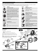 OPERATING INSTRUCTIONS TIPS FOR BEST TRIMMING RESULTS • For best trimming results, operate unit at full throttle. • Keep the cutting attachment parallel to the ground. • Do not force the cutting attachment. Allow the tip of the line to do the cutting, especially along walls. Cutting with more than the tip will reduce cutting efficiency and may overload the engine. • Cut grass over 8 inches (200 mm) by working from top to bottom in small increments to avoid premature line wear or engine drag.