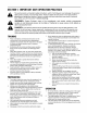 . Never operate witha missing ordamaged discharge Contact yourdealerortelephone 1-800-800-7310 for chute.Keepallsafety devices inplaceandworking. assistance andthename ofyournearest servicing dealer. 5. Never runanengine indoors orinapoorly ventilated area.Engine exhaust contains carbon monoxide, an odorless anddeadly gas. MAINTENANCE ANDSTORAGE 6. Donotoperate machine whileundertheinfluence of 1. Never tamper with safety devices. Check their proper alcohol ordrugs. operation regularly.