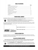 TABLEOFCONTENTS Content Page Important Safe Operation Practices ........................................................................ 3 Assembling Your Snow Thrower ............................................................................. 5 Know Your Snow Thrower ....................................................................................... 6 Operating Your Snow Thrower ................................................................................ 7 Making Adjustments ...........