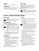 . Never operate withamissing ordamaged discharge telephone 1-800-800-7310 forassistance andthename chute.Keep allsafety devices inplaceandworking. ofyournearest servicing dealer. 5. Never runanengine indoors orinapoorlyventilated area.Engine exhaust contains carbon monoxide, an MAINTENANCE ANDSTORAGE odorless anddeadly gas. 1. Never tamper with safety devices. Check their proper 6. Donotoperate machine whileundertheinfluence of operation regularly. Refer to the maintenance and alcohol ordrugs.