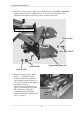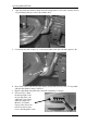 Operating Manual FK 105 9. Lower the mower on to e.g. squared timber so that the strain relief clamp on the front side of the deck is not stressed. 10. Unbolt the strain relief clamp from the cross member "D" on the front of the machine and replace it with the supplied deck suspension "E". Re-adjust the tension distance according to the original strain relief clamp. D View from front right E 11. Undo the fixing bolt of the engine V-belt pulley.