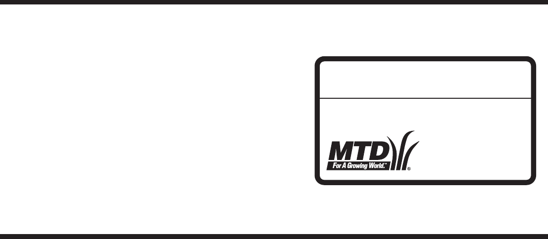 warranty and service. Please refer to the engine manufacturer’s Owner’s/Operator’s Manual, packed separately with your unit,