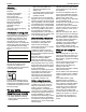 Operating Manual English Problem Possible cause(s) Remedy Engine emits smoke. Too much oil in engine. Switch off engine immediately. Check engine oil level. Engine defective. Switch off engine immediately. Arrange for service agent to check the engine. Damaged blade drive shaft or defective cutting blade. Switch off engine immediately. Have defective parts replaced. Excessive vibration. Cutting mechanism does Engine speed too low. not discharge grass or cuts Travelling speed too high. unevenly.