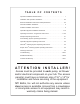 TA B L E O F C O N T E N T S Important Installation Measurements . . . . . . . . . . . . . . . . . . . . . . . . . . . . . . . 1 Installation and Operation Guidelines . . . . . . . . . . . . . . . . . . . . . . . . . . . . . . 2-3 Electrical Installation Instructions and Specifications . . . . . . . . . . . . . . . . . . 3-4 General Installation Guidelines . . . . . . . . . . . . . . . . . . . . . . . . . . . . . . . . . . . . 5 Air Bath Installation Instructions . . . . . . . . . . . . . . . . . . . . . .