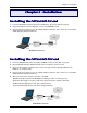 Chapter 2 – Installation Chapter 2 – Installation Installing the MT5634ZLX Card 1. Insert the MT5634ZLX Card into the laptop’s PCMCIA slot. Be sure the label is facing up. 2. Plug 15-pin adapter end of the telephone cord into the MT5634ZLX Card. 3. Plug the other end of the RJ-11 into an available telephone wall jack. This connects you to the PSTN (Public Switched Telephone Network). MT5634ZLX Connections Installing the MT5634ZLXI Card 1. Insert the MT5634ZLXI Card into the laptop’s PCMCIA slot.