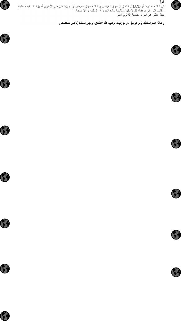 Birlikte verilen vidalar duvar, tavan veya döşeme teçhizatınıza uygun olmayabilir.