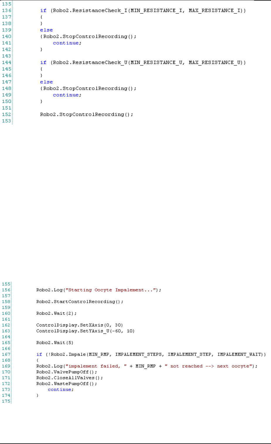 The impalement process is started by a movement of the z-axis to the default oocyte impalement depth