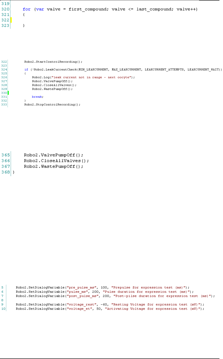 oocyte. The break command in line 331 terminates the execution of the loop and the script is