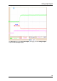 Screen shot from a standard oscilloscope triggered on the Sync Out pulse. Green trace = current
