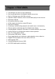 Chapter 1 FEATURES Two USB ports (for mouse usage and backup). Dual streaming enhances the speed of network transmission Built-in VGA output up to 1024x768 resolution Individual setup of resolution, frame rate and video quality for each channel Still image snapshot AVI converter with time stamp H.