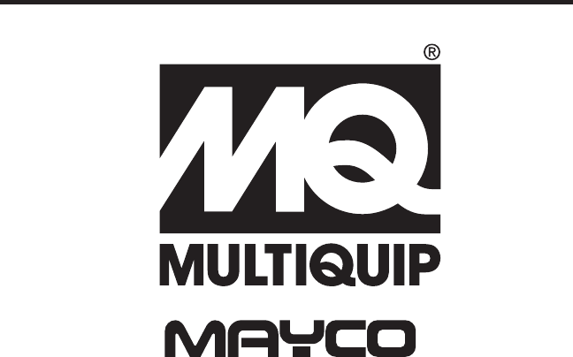 INSTALLATION/OPERATION MANUAL HERE’S HOW TO GET HELP PLEASE HAVE THE MODEL AND SERIAL NUMBER ON-HAND WHEN CALLING UNITED STATES Multiquip Corporate Office 18910 Wilmington Ave. Carson, CA 90746 Contact: mq@multiquip.com MQ Parts Department Tel. (800) 421-1244 Fax (800) 537-3927 800-427-1244 310-537-3700 Fax: 800-672-7877 Fax: 310-637-3284 800-421-1244, Ext. 279 310-537-3700, Ext.