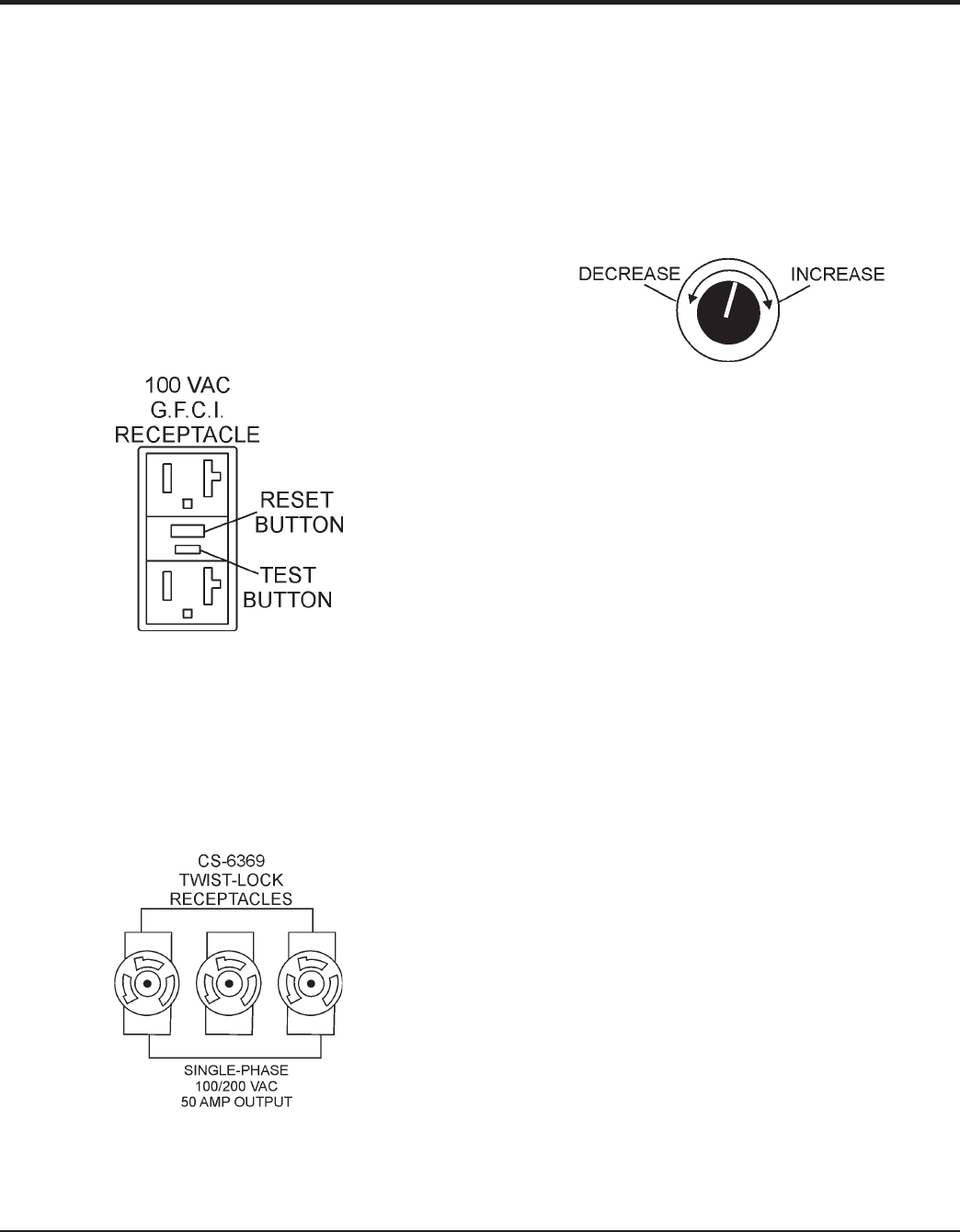 There are three 100/200V, 50 amp auxiliary twist-lock (CS-