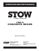 STOW CMS-9S CONCRETE MIXER — TABLE OF CONTENTS STOW CMS-9S Concrete Mixer Here's How To Get Help ............................................ 3 Table Of Contents ..................................................... 4 Parts Ordering Procedures ....................................... 5 Specifications ............................................................ 6 Dimensions (Mixer) ................................................... 7 Safety Message Alert Symbols .................................