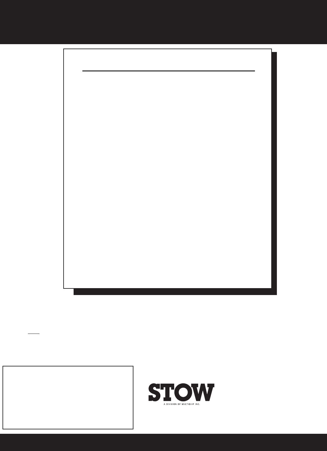 Multiquip Inc, and the STOW logo are registered trademarks of Multiquip Inc. and may not be used, reproduced, or altered without written permission. All other