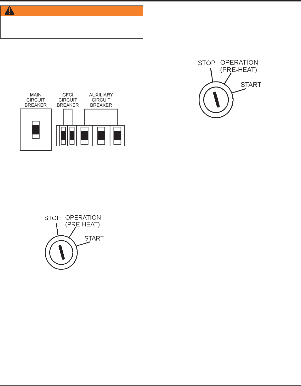 Place both the 1. MAIN, GFCI and LOAD circuit breakers