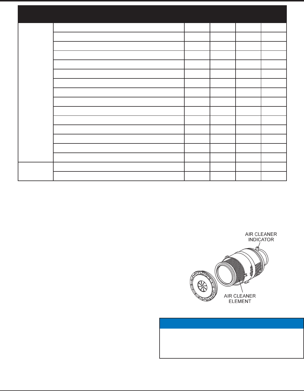 Replace primary air fi lter element when restriction indicator shows a vacuum of 625 mm (25 in. H20).