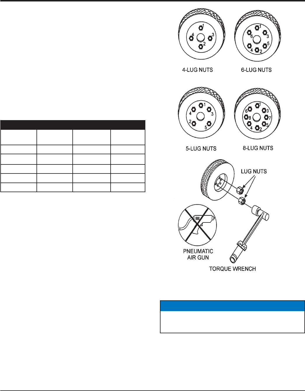 After fi rst road use, retorque all lug nuts in sequence. 3.