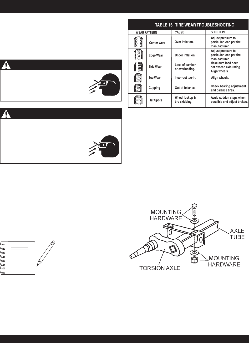 Table 16 (Tire Wear Troubleshooting) will help pinpoint the