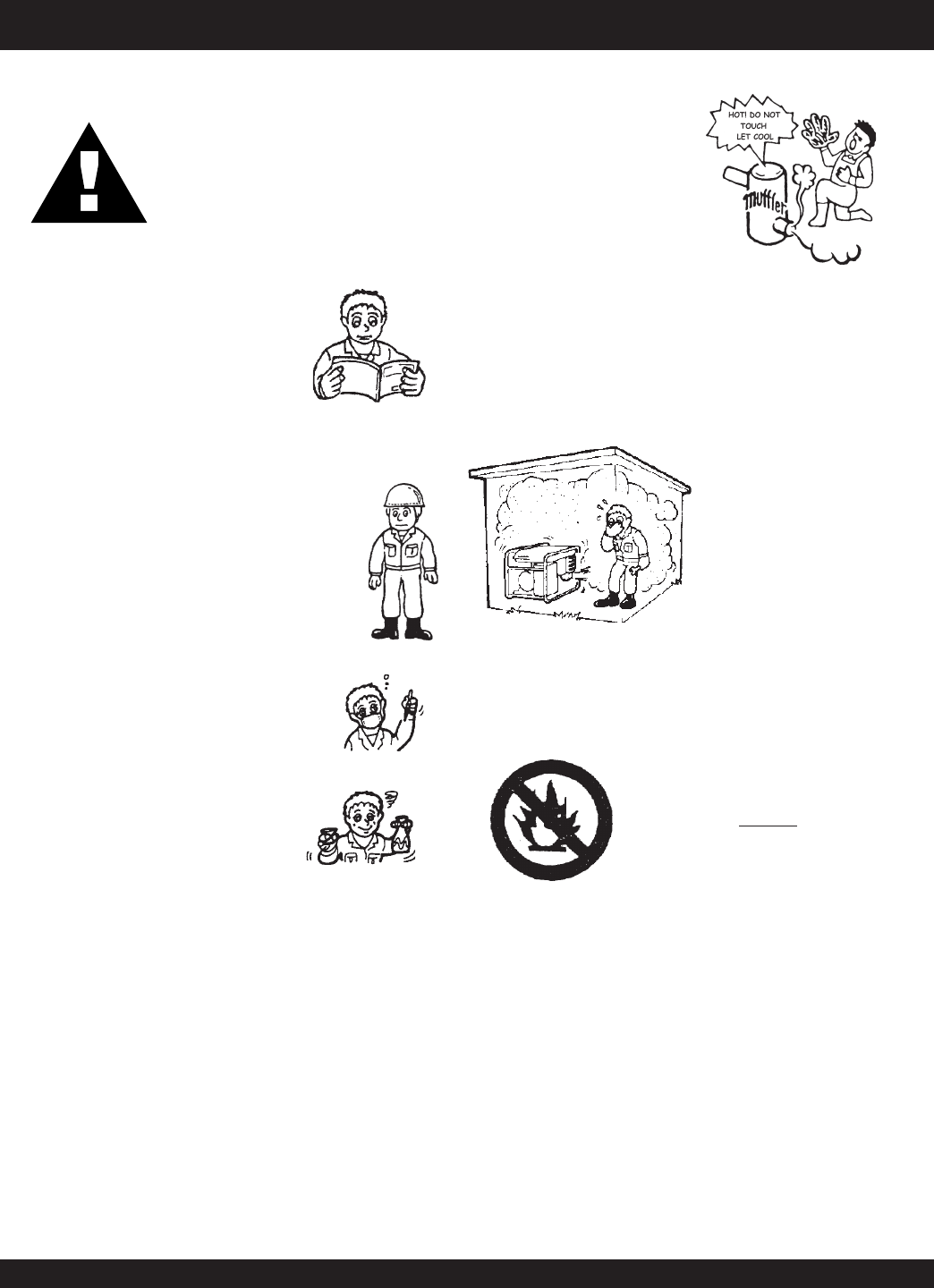 NEVER touch the hot exhaust manifold, muffler or cylinder. Allow