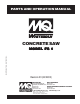 HERE'S HOW TO GET HELP PLEASE HAVE THE MODEL AND SERIAL NUMBER ON-HAND WHEN CALLING PARTS DEPARTMENT 800-427-1244 or 310-537-3700 FAX: 800-672-7877 or 310-637-3284 SERVICE DEPARTMENT 800-421-1244 FAX: 310- 537-4259 TECHNICAL ASSISTANCE 800-478-1244 FAX: 310- 631-5032 WARRANTY DEPARTMENT 888-661-4279, or 310-661-4279 FAX: 310- 537-1173 MQ-WHITEMAN FS1 CONCRETE SAW — PARTS & OPERATION MANUAL — REV.
