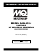 OPERATION AND PARTS MANUAL HERE'S HOW TO GET HELP PLEASE HAVE THE MODEL AND SERIAL NUMBER ON-HAND WHEN CALLING MULTIQUIP CORPORATE OFFICE 18910 Wilmington Ave. Carson, CA 90746 Email: mq@multiquip.com Internet: www.multiquip.com PARTS DEPARTMENT 800-427-1244 310-537-3700 MAYCO PARTS 800-306-2926 310-537-3700 SERVICE DEPARTMENT 800-478-1244 310-537-3700 TECHNICAL ASSISTANCE 800-478-1244 WARRANTY DEPARTMENT 800-421-1244, EXT. 279 310-537-3700, EXT.
