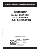 PARTS AND OPERATION MANUAL © COPYRIGHT 2004, MULTIQUIP INC. MULTIQUIP Model GLW-180H D.C. WELDER A.C. GENERATOR Revision #5 (03/14/05) MULTIQUIP INC.. PARTS DEPARTMENT: 18910 WILMINGTON AVE. 800-427-1244 CARSON, CALIFORNIA 90746 FAX: 800-672-7877 SERVICE DEPARTMENT/TECHNICAL ASSISTANCE: 310-537-3700 800-421-1244 800-478-1244 FAX: 310-537-3927 FAX: 310-631-5032 E-mail:mq@multiquip.com • www:multiquip.