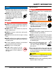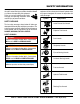 Safety Information NOTICE NeveR run engine without an air filter or with a dirty air filter. Severe engine damage may occur. Service air filter frequently to prevent engine malfunction. NeveR tamper with the factory settings of the engine or engine governor. Damage to the engine or equipment can result if operating in speed ranges above the maximum allowable. FUEL SAFETY DANGER BATTERY SAFETY DANGER DO NOT drop the battery. There is a possibility that the battery will explode.