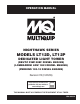 GENERAL INFORMATION The Multiquip LT12 Series Light Tower is a dedicated general purpose light tower engineered to provide dependable lighting for a wide range of applications. This includes lighting for construction sites, industrial locations, special events, and emergency conditions. PANEL LIGHT METAL HALIDE LAMPS CONVENIENCE RECEPTACLES The lighting system of the LT12 Series Light Tower is comprised of 4 metal halide, 1000-watt lamps.