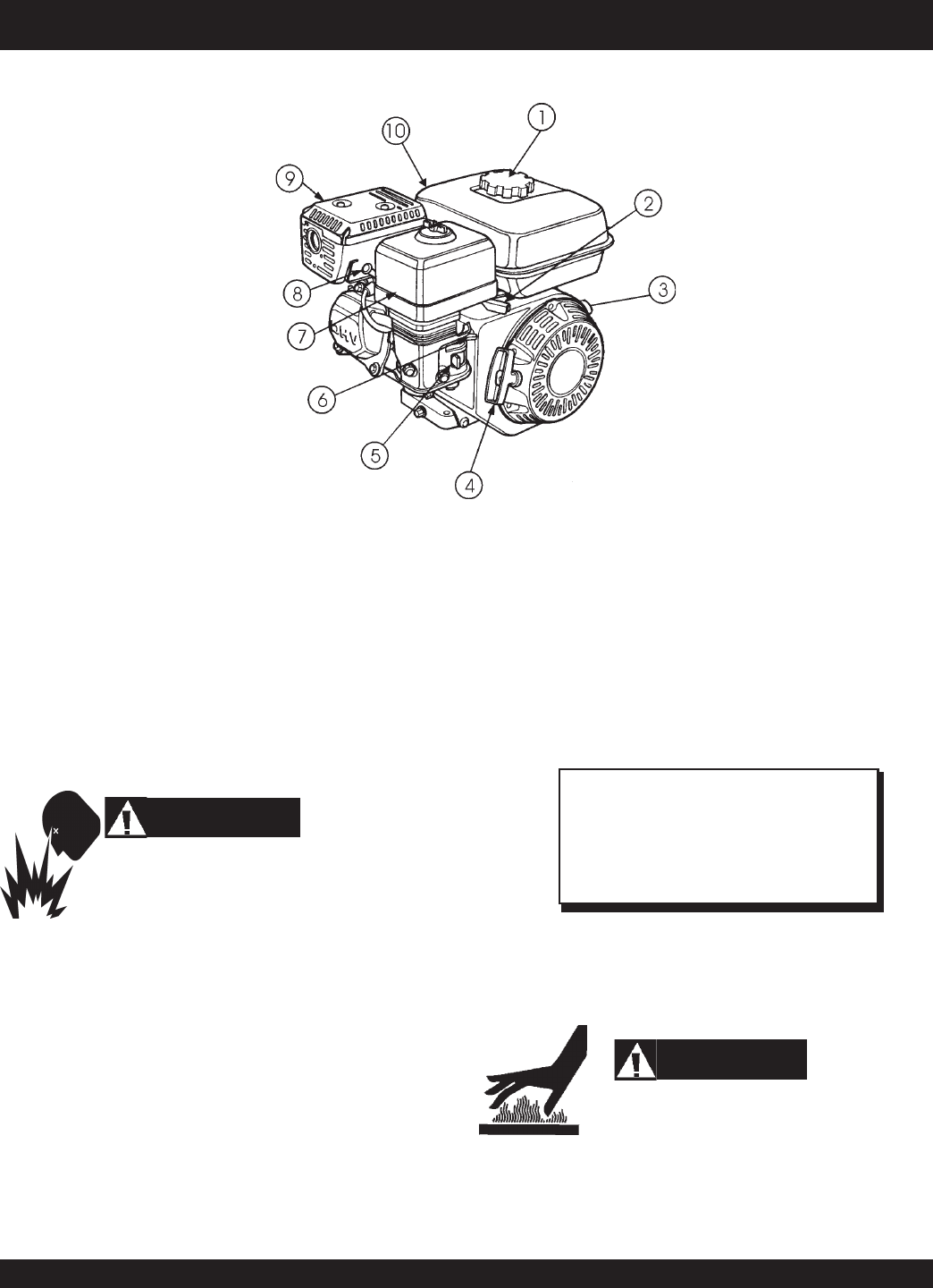10. Fuel Tank – Holds unleaded gasoline. For additional
