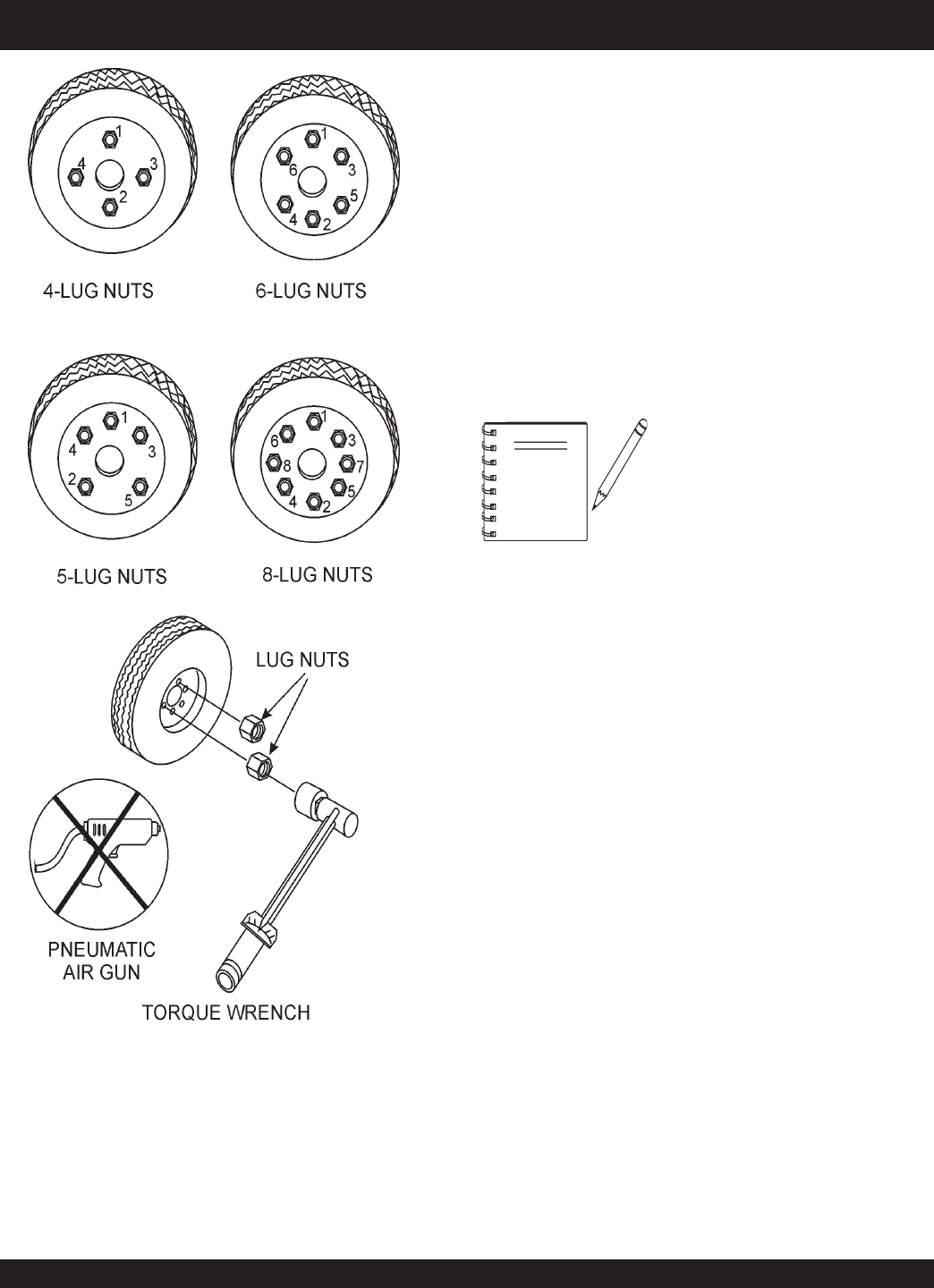3. After first road use, retorque all lug nuts in sequence. Check